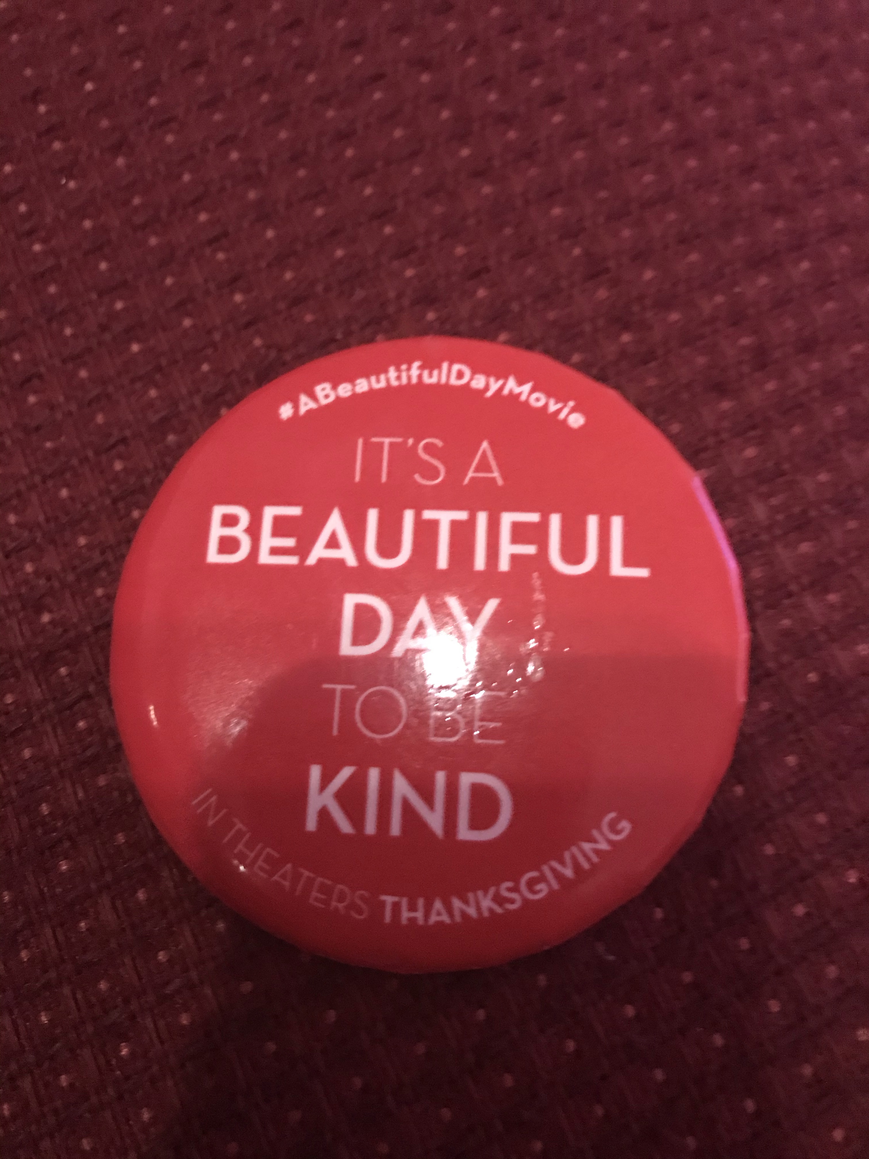 I was given this button at church on Sunday, October 27th, 2019. It comes from the movie called a beautiful day in the neighborhood. The film is about kindness triumphing over cynicism, based on the true story of a real-life friendship between Fred Rogers and journalist Tom Junod. After Tom was given the assignment of Fred Rogers, he overcomes his skepticism, learning about empathy, kindness, and decency from America’s most beloved neighbor. This movie comes out on November 22nd this movie will give you and your family a valuable lesson in being kind. When you are kind, it makes you feel good as you are doing good to others. When you show kindness to a person or group of people, it affects them and you too. Kindness goes around. You never know exactly how huge of an effect a little act of kindness can have. Also, when you are kind, you have one of the fruits of the Spirit. After watching this movie, it can make your Thanksgiving and every day a little kinder. Read Galatians 5:22.